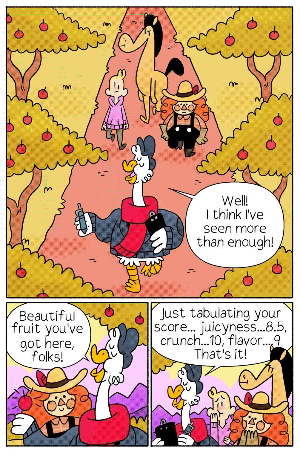 Take a visit to the magical-ish land of Winsom! There you'll meet fanciful little guys like Alvin, his pal Horse-O the horse, and their mom, who is a living scarecrow! They grow apples for a living, which turns out to be a more fraught profession than you'd think. I hope everyone's ok in the end!